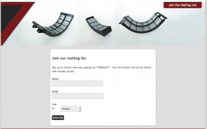 The website includes a custom integration with Campaign Monitor to allow customers to join the company's mailing list.