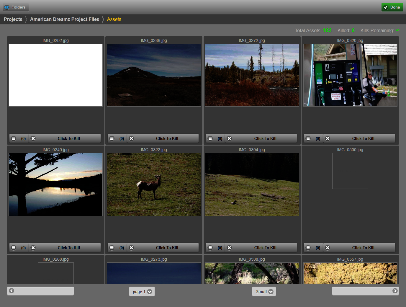 The HTML5 Asset View project consisted of a port of the XDAM Flex asset viewer to HTML5. Features of this application include uploading and downloading images, email image delivery, image organization, image ranking, image search. Other features include dynamically resizing thumbnails, infinite scrolling and image metadata view. This project, along with Mobile Approvals necessitated the creation of a robust REST API, extensive use of jQuery and various jQuery plugins.